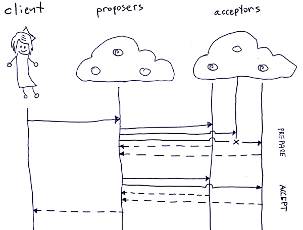 The Paxos topology is similar to the typical 3-tier application where clients correspond to web-browsers, proposers to web servers and acceptors to databases.